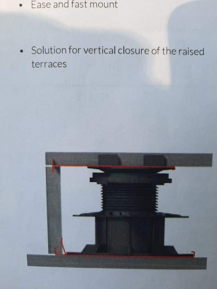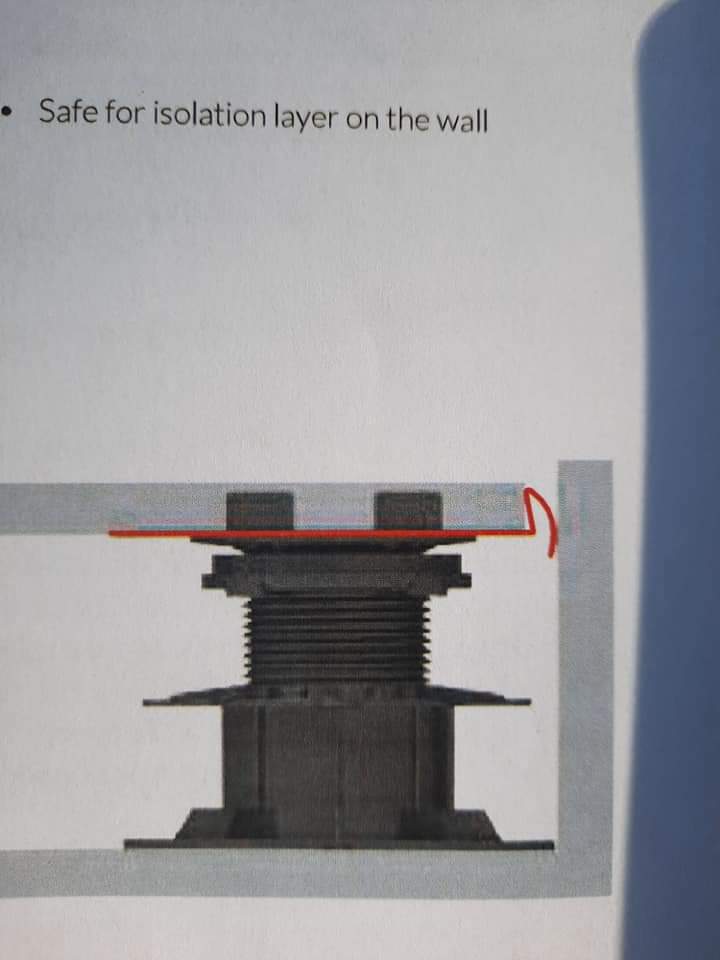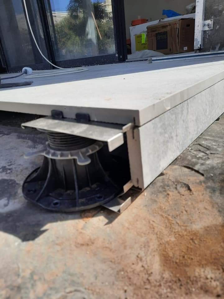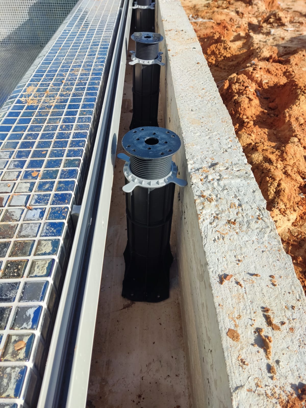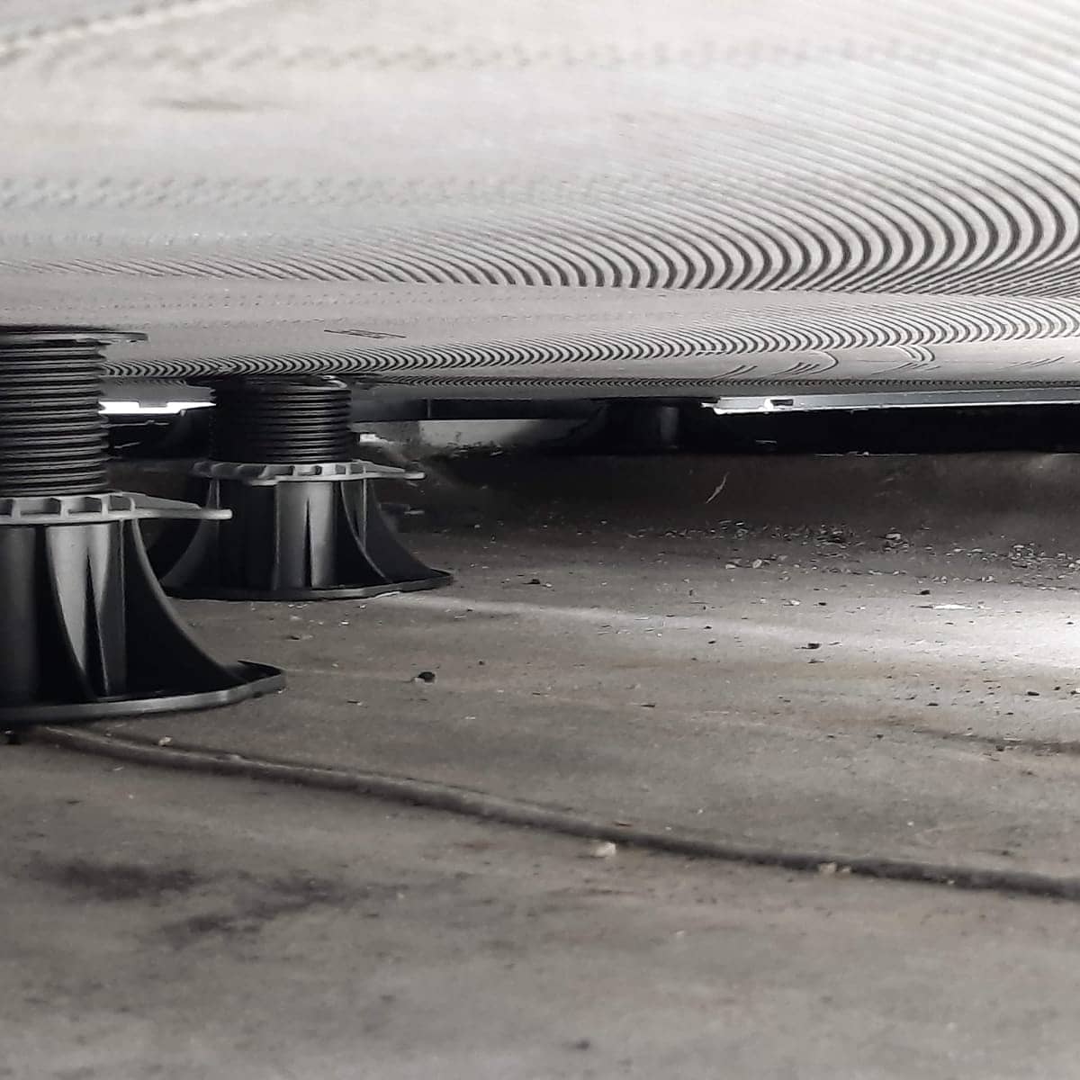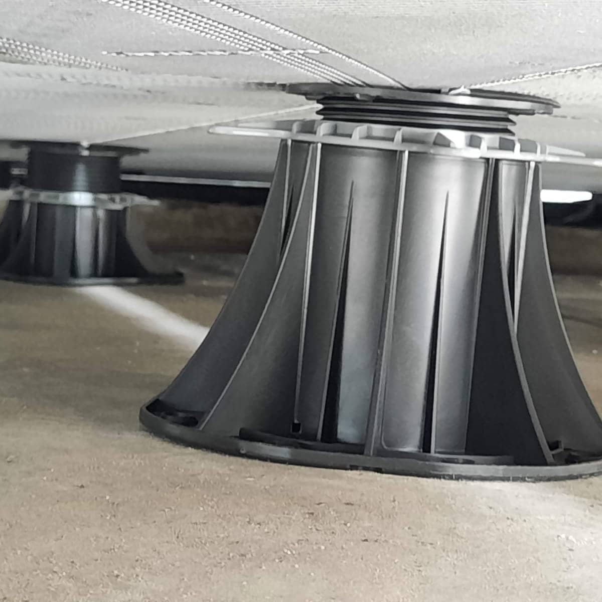 רגליות תמיכה מתכווננות לרצפה צפה נותנת את המענה האידיאלי עבור רצפה – רצפה תלויה המותקנת על גבי רגליות מתכווננות לגובה נדרש, ומשמשת למעבר כבלים, צינורות וחיווט ועוד… הרגליות מיוצרות מפוליפרופילן בגוון שחור, ובעלות חוזק מינימלי של 1000 ק”ג במרכז הרגלית. רצפה צפה משמשת למרפסות, גינות, סביבת בריכות שחייה, גגות ומקומות ציבוריים. השיטה מאפשרת קבלת משטח ריצוף מפולס ומראה אחיד ואסתטי של הרצפה.